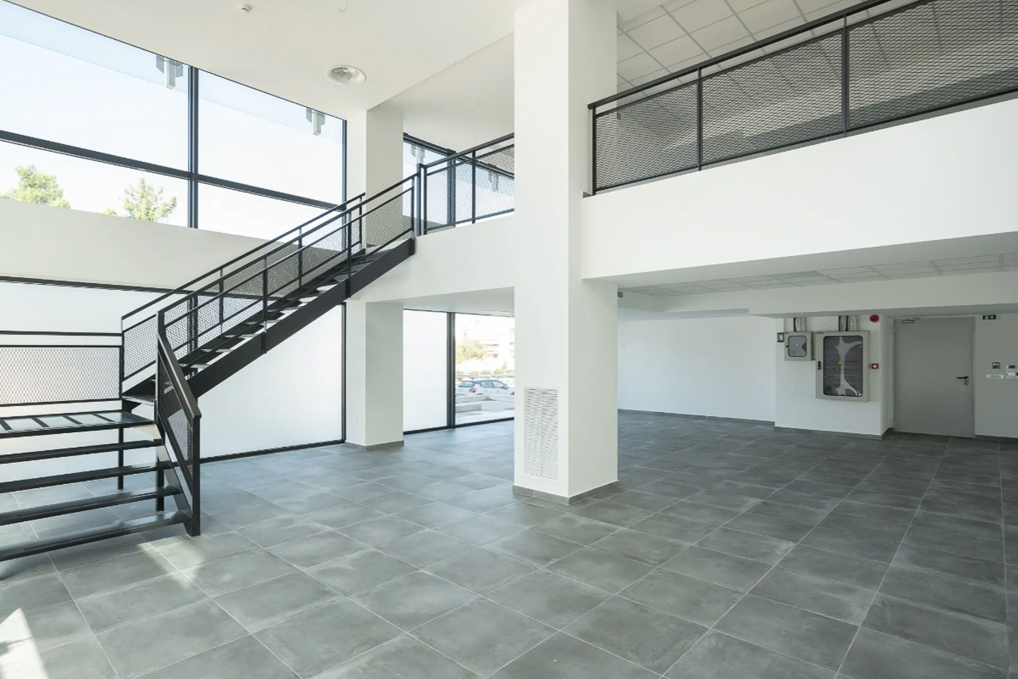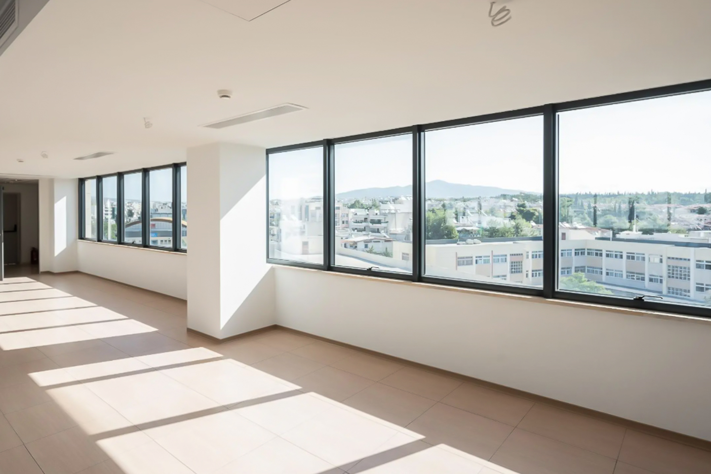Ειδικότερα, το 1ο κτήριο συνολικού εμβαδού 3.953 τ.μ., κατασκευασμένο το 2.005 και πλήρως ανακαινισμένο το 2023, αποτελείται από ισόγειο 1.413 τ.μ., 1ο όροφο, εμβαδού 1.373 τ.μ. και 2ο όροφο 1.167 τ.μ. Όσον αφορά τα τεχνικά χαρακτηριστικά, παρουσιάζει: δομημένη καλωδίωση, γραφειακούς open-space χώρους, κουφώματα αλουμινίου με διπλά τζάμια, συστήματα πυρανίχνευσης, εξαερισμού και πυρασφάλειας, ανελκυστήρα, laminate δάπεδα, αυτόνομο VRV σύστημα ψύξης - θέρμανσης, ψευδοροφές από γυψοσανίδα με ενσωματωμένο φωτισμό, ενώ το ύψος της οροφής είναι στα 3.5 μέτρα.