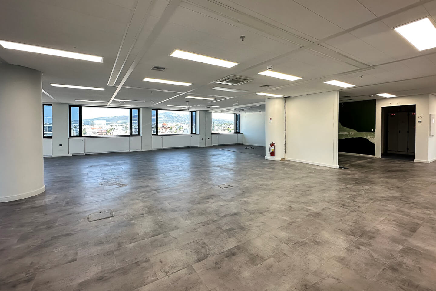 Συγκεκριμένα, διαθέτει πολύ φωτεινούς open space χώρους γραφείων με ωραία θέα, reception, meeting room, computer room, αποθήκη, κουζινάκι και wc. Οι ψευδοροφές είναι από ορυκτή ίνα και τα δάπεδα είναι laminate.