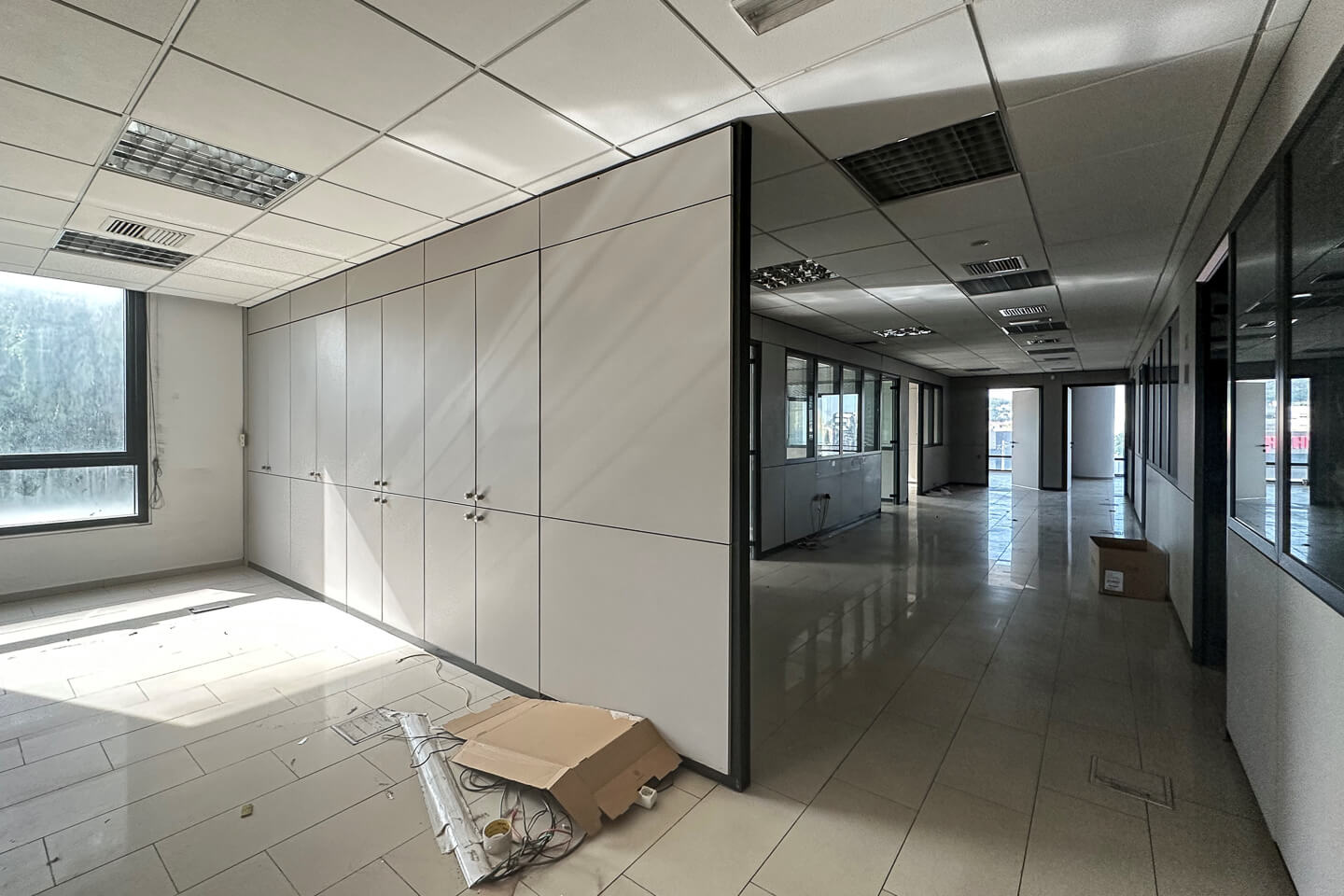 Περιλαμβάνεται reception, meeting room, χώροι εργασίας, ψευδοροφές, δάπεδα laminate, αυτονομία ψύξης-θέρμανσης (VRV), δομημένη καλωδίωση cat 5e, σύστημα πυρασφάλειας και θέσεις στάθμευσης.