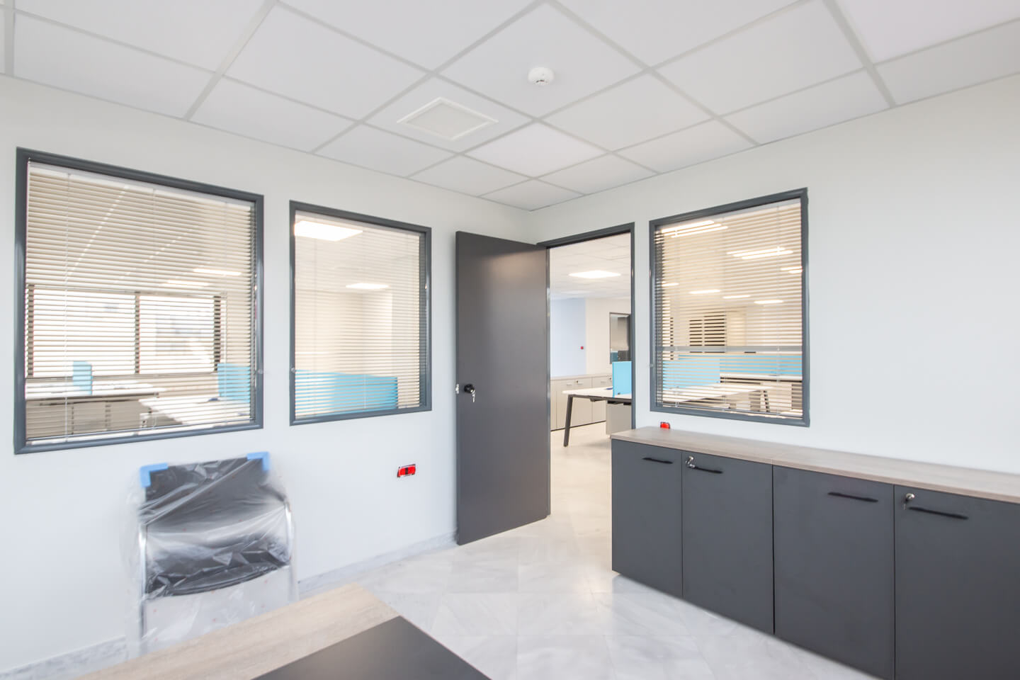 Ο χώρος είναι πλήρως ανακαινισμένος και διαμπερής, κατάλληλος για απαιτητικές επαγγελματικές χρήσεις. Περιλαμβάνει δάπεδα από μάρμαρο, ψευδοροφή ορυκτής ίνας, σύγχρονο αυτόνομο σύστημα κλιματισμού, δομημένη καλωδίωση, εγκατάσταση για υπολογιστές και τριφασικό ρεύμα. Επιπλέον, οι εσωτερικοί χώροι διαμορφώνονται ευέλικτα με κινητά χωρίσματα από γυψοσανίδα και γυαλί, προσφέροντας τόσο open-plan διάταξη όσο και κλειστά γραφεία ή meeting rooms.