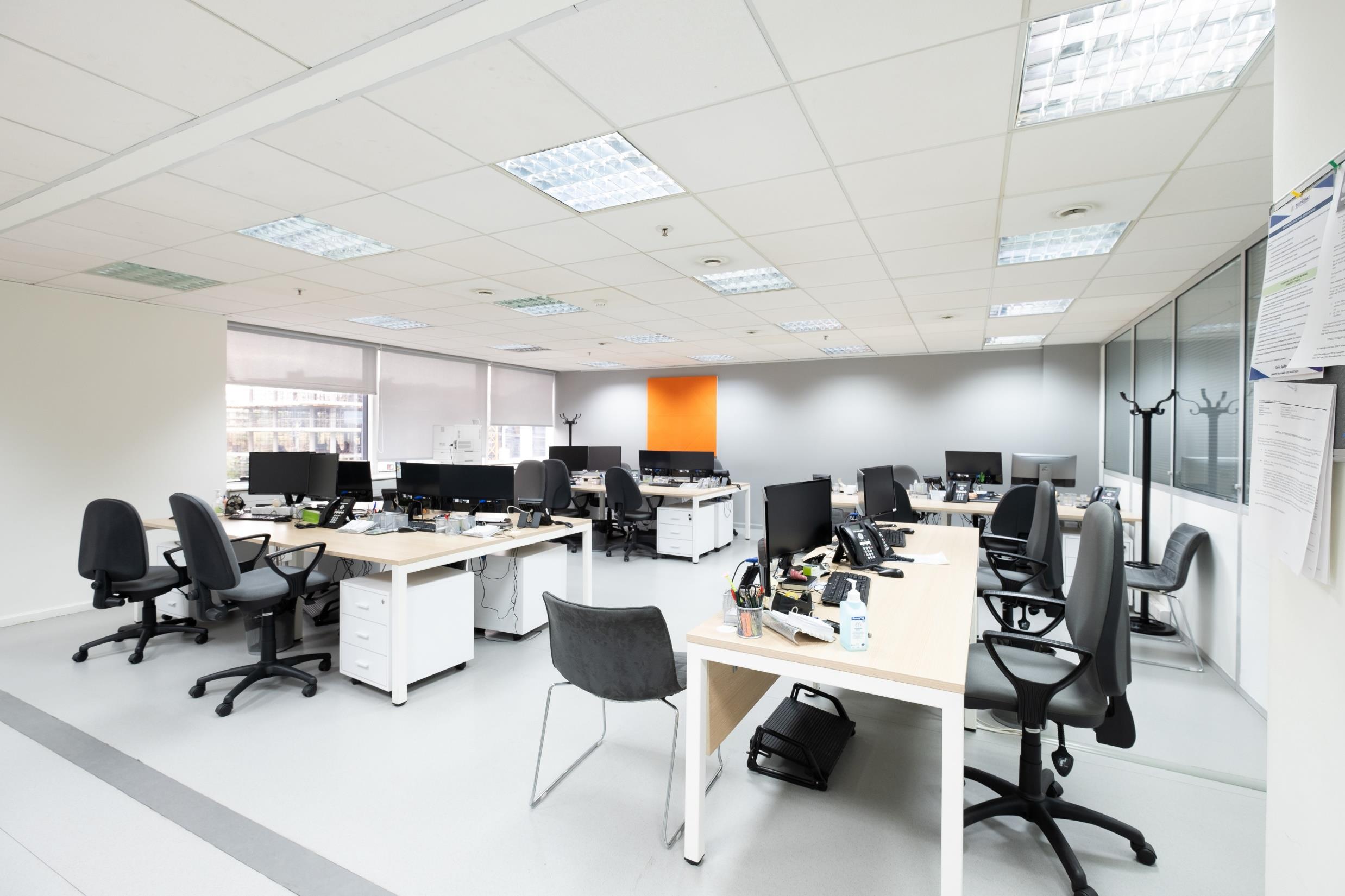 Διαθέτει κεντρικό κλιματισμό τύπου fun coil, εξαερισμό, ψευδοροφές ορυκτών ινών, δομημένη καλωδίωση, πρίζες δαπέδου, βινυλικά δάπεδα, κινητά χωρίσματα, πυρόσβεση, πυρανίχνευση, computer room, υδραυλικούς ανελκυστήρες, συναγερμό, WC και 2 κουζινάκια.