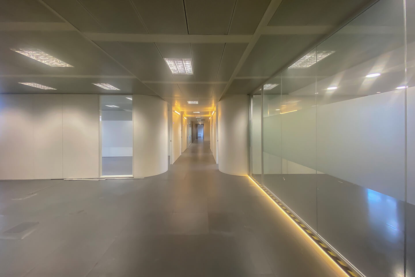 Αναλυτικότερα, περιλαμβάνει εντυπωσιακές εισόδους, δύο server room, θέατρο διαλέξεων, meeting rooms, διευθυντικό γραφείο, πολύ φωτεινούς open space χώρους εργασίας, γυάλινα κινητά χωρίσματα, έξι ανελκυστήρες και γεννήτρια.