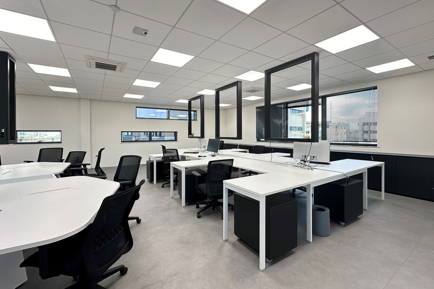 Αναλυτικότερα, ο χώρος διαθέτει κλιματισμό, δομημένη καλωδίωση, ράμπα υπογείου, ασανσέρ ατόμων, κουζινάκι, τουαλέτες και για άτομα με ειδικές ανάγκες (ΑΜΕΑ), σύστημα συναγερμού, πυρόσβεσης, πυρανίχνευσης, εξαερισμού και αυτόνομο σύστημα κλιματισμού / ρεύματος. Επίσης, περιλαμβάνει computer room, σύνδεση οπτικής ίνας, φωτιστικά, ψευδοροφές ορυκτών ίνων, αυτοτελές και υπαίθριο - υπόγειο parking με 14 θέσεις στάθμευσης.