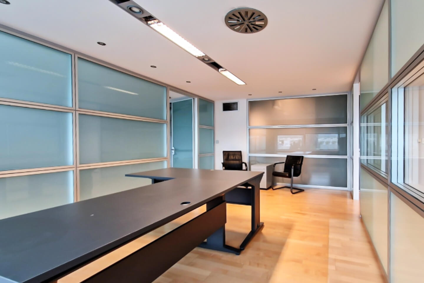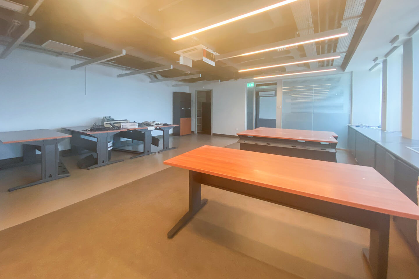 Αναλυτικότερα, οι χώροι διαθέτουν κλειστούς και ανοιχτούς γραφειακούς χώρους, διαμορφωμένους με κινητά χωρίσματα καθώς και χώρο υποδοχής, αίθουσα συσκέψεων, computer room, κουζίνα και WC. Η ψευδοροφή είναι από γυψοσανίδα και τα δάπεδα είναι laminate.