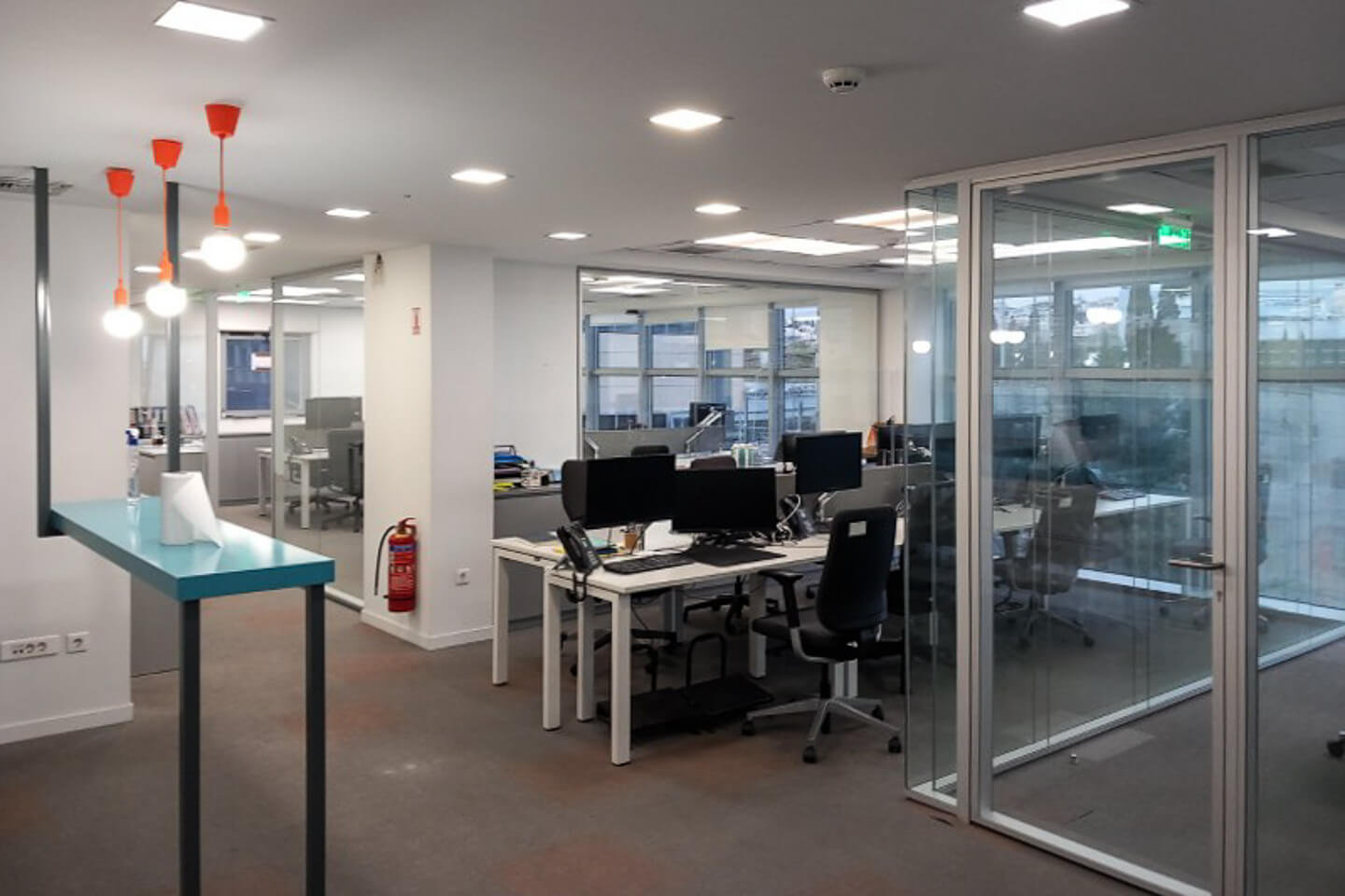 Διαθέτει reception, φωτεινούς open space χώρους εργασίας με γυάλινα κινητά χωρίσματα, meeting room, κουζινάκι και wc σε κάθε όροφο. Οι ψευδοροφές είναι ορυκτής ίνας και γυψοσανίδας ενώ τα δάπεδα είναι από μοκέτα. Περιλαμβάνει επίσης 19 θέσεις στάθμευσης.