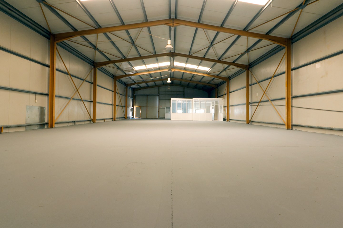 Η αποθήκη αποτελείται από έναν ισόγειο χώρο χωρίς ενδιάμεσες κολώνες, έχει διαστάσεις 30x14 μέτρα με ύψος 6,4 μέτρα, διαθέτει μία συρόμενη πόρτα και λίγα γραφεία 30 τετραγωνικών μέτρων.