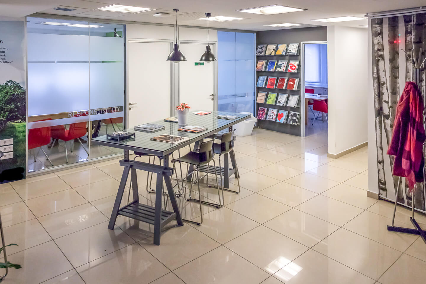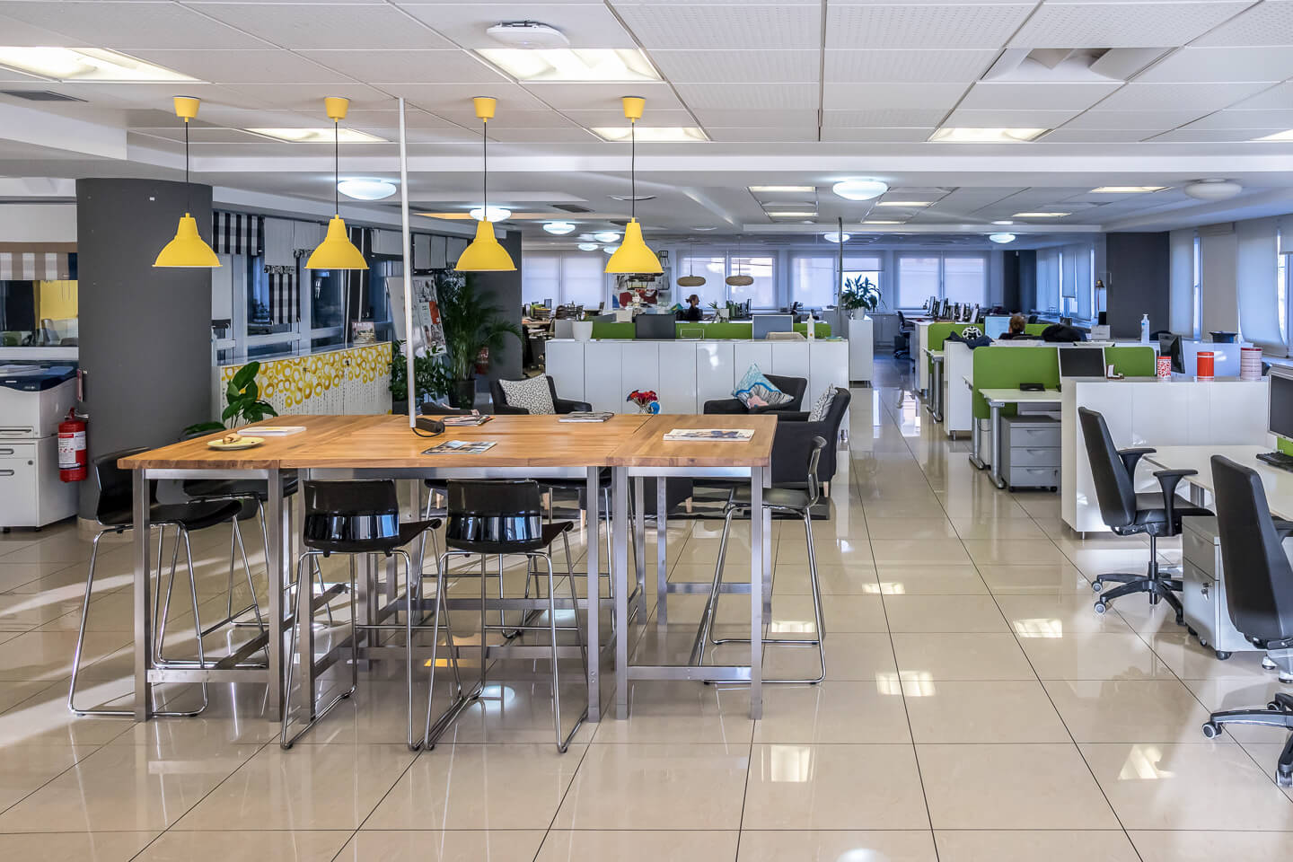 Το γραφείο είναι μοντέρνας κατασκευής, 1ου ορόφου και αποτελείται από έναν ενιαίο εργασιακό χώρο με λίγα γραφεία με κινητά χωρίσματα, αίθουσα συσκέψεων, computer room, χώρο υποδοχή, WC καθώς και εγκαταστάσεις για άτομα με ειδικές ανάγκες όπως ράμπα και WC. Επιπρόσθετα, το γραφείο διαθέτει σύγχρονες παροχές όπως δομημένη καλωδίωση, υποσταθμό της ΔΕΗ, αυτόνομο σύστημα κλιματισμού για ψύξη-θέρμανση, διπλά τζάμια, ψευδοροφές, δάπεδα από πλακάκι, συναγερμό, κάμερες και access control.