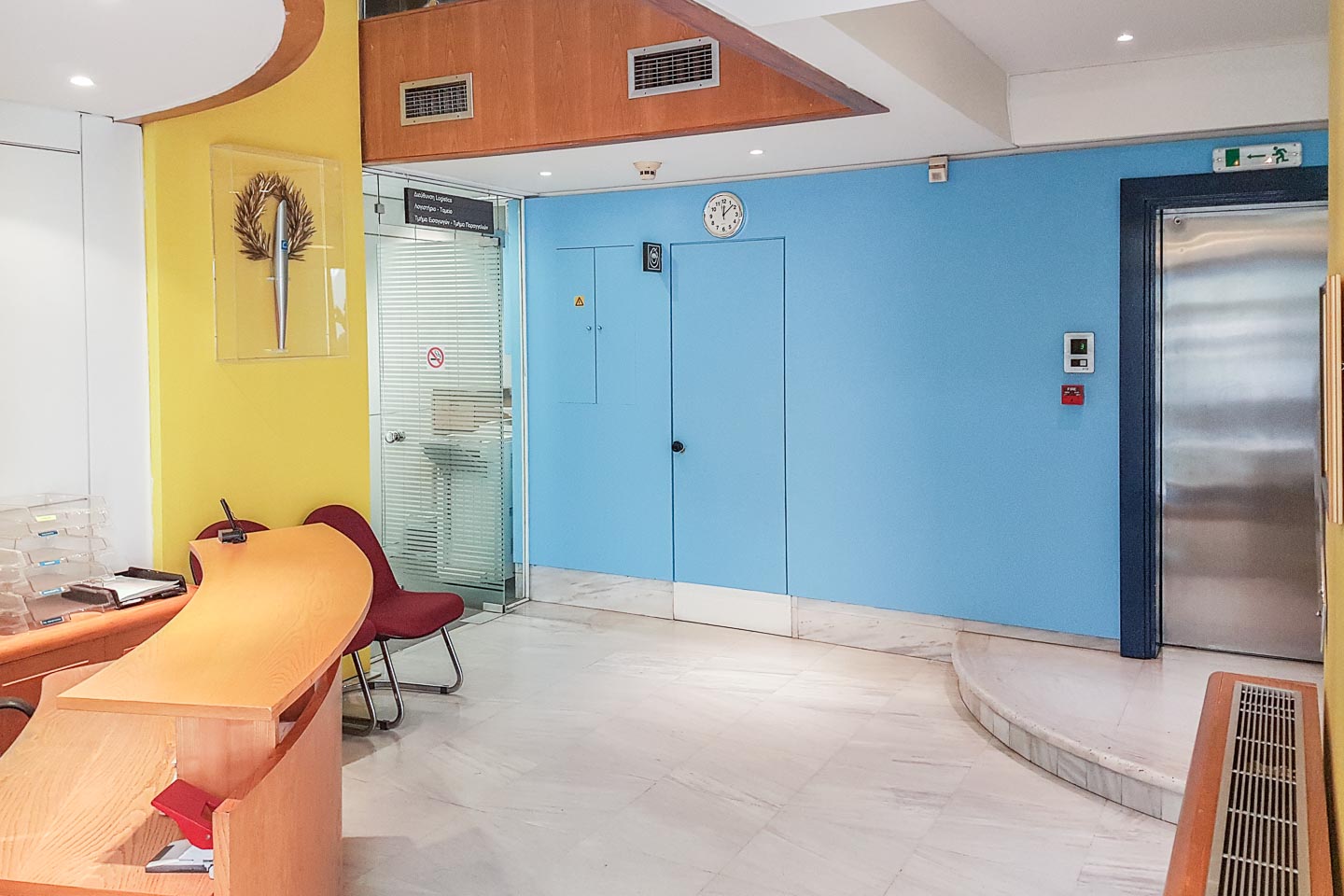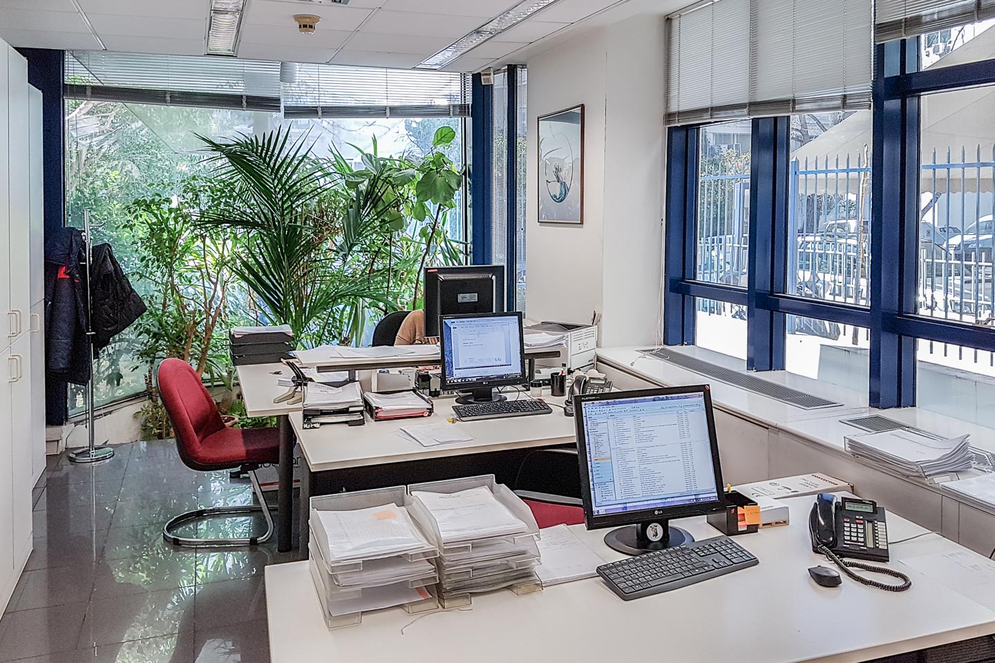 Οι χώροι εργασίας στους ορόφους διαθέτουν δάπεδα από πλακάκια και ψευδοροφές ορυκτής ίνας, τα δε τζάμια είναι διπλά. Το κτίριο διαθέτει δομημένη καλωδίωση και αυτόνομη ψύξη θέρμανση, ενώ συγχρόνως βρίσκετε σε πολύ καλό σημείο της περιοχής.