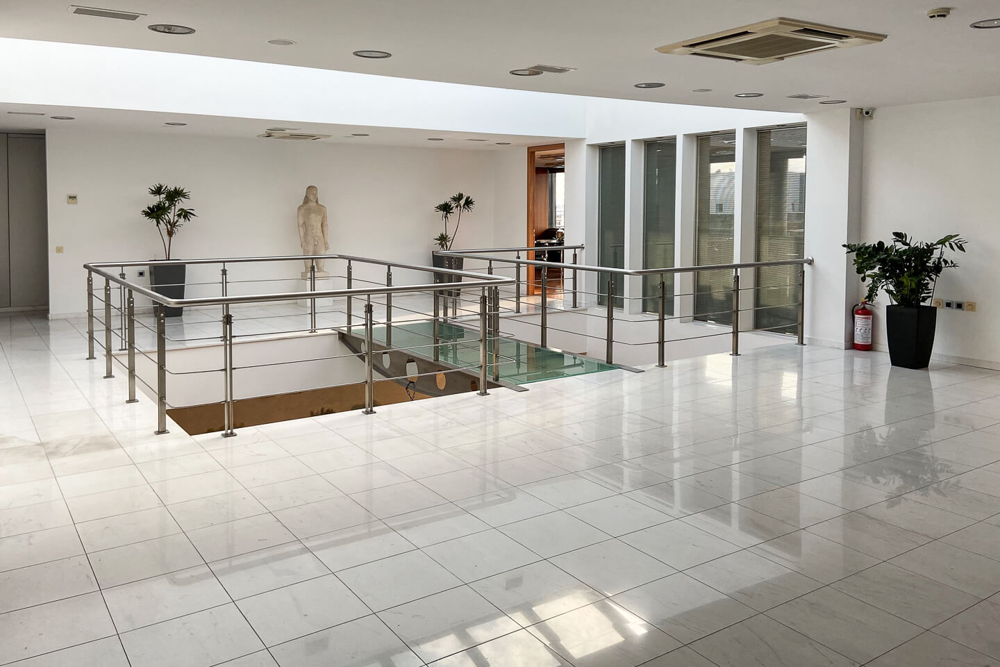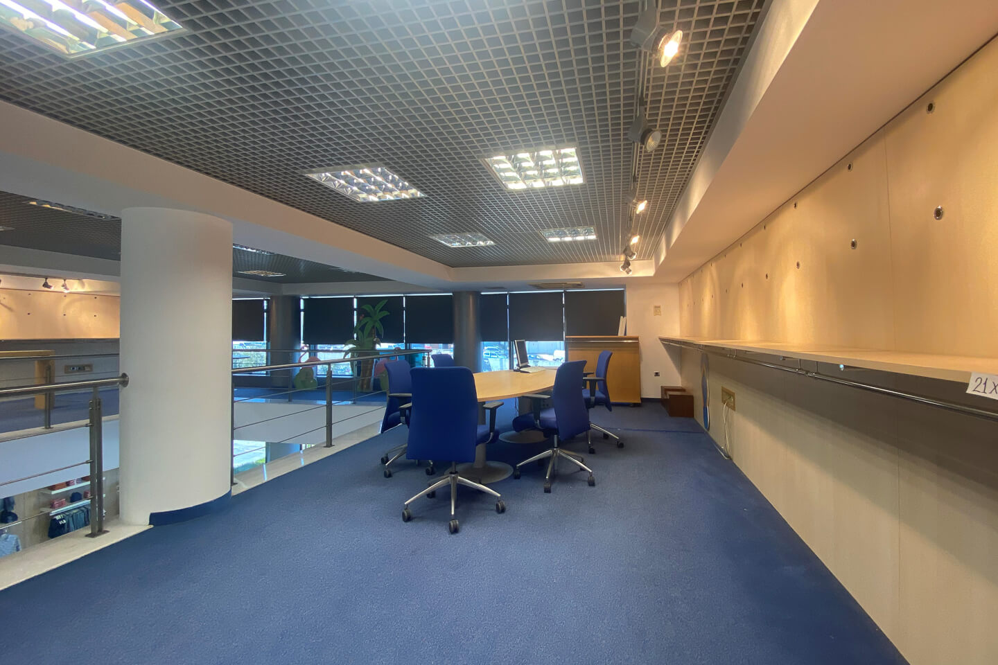 Αναλυτικότερα, πρόκειται για κτίριο πολυτελούς κατασκευής με εντυπωσιακή είσοδο και χώρο υποδοχής στο ισόγειο. Υπάρχουν κλειστοί χώροι γραφείων, meeting rooms, server room, κουζινάκι και WC. Οι ψευδοροφές είναι από γυψοσανίδα ενώ τα δάπεδα είναι μαρμάρινα και από μοκέτα. Περιλαμβάνονται επίσης, 2 ανελκυστήρες και 15 θέσεις πάρκινγκ.