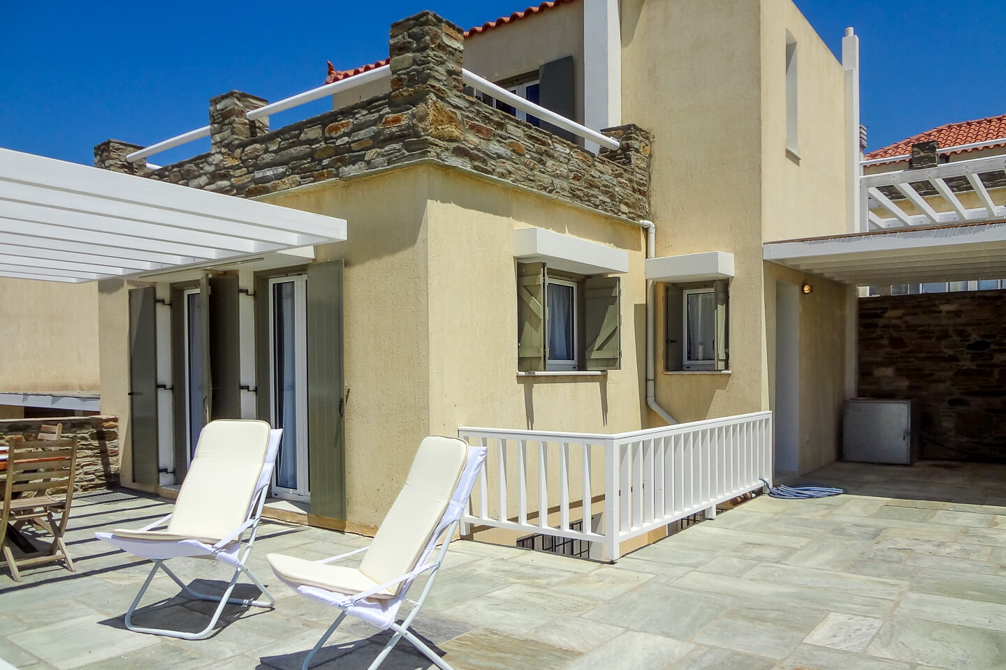 Άνδρος πολυτελής βίλα 113 τ.μ, σε οικόπεδο 4.800 τ.μ. με θέα προς το Κάβο Ντόρο, την Σέριφο, τη Κύθνο, την Τζιά, τα Μακρονήσια καθώς και την Ακτή της Αττικής και το ακρωτήριο της Ευβοίας.