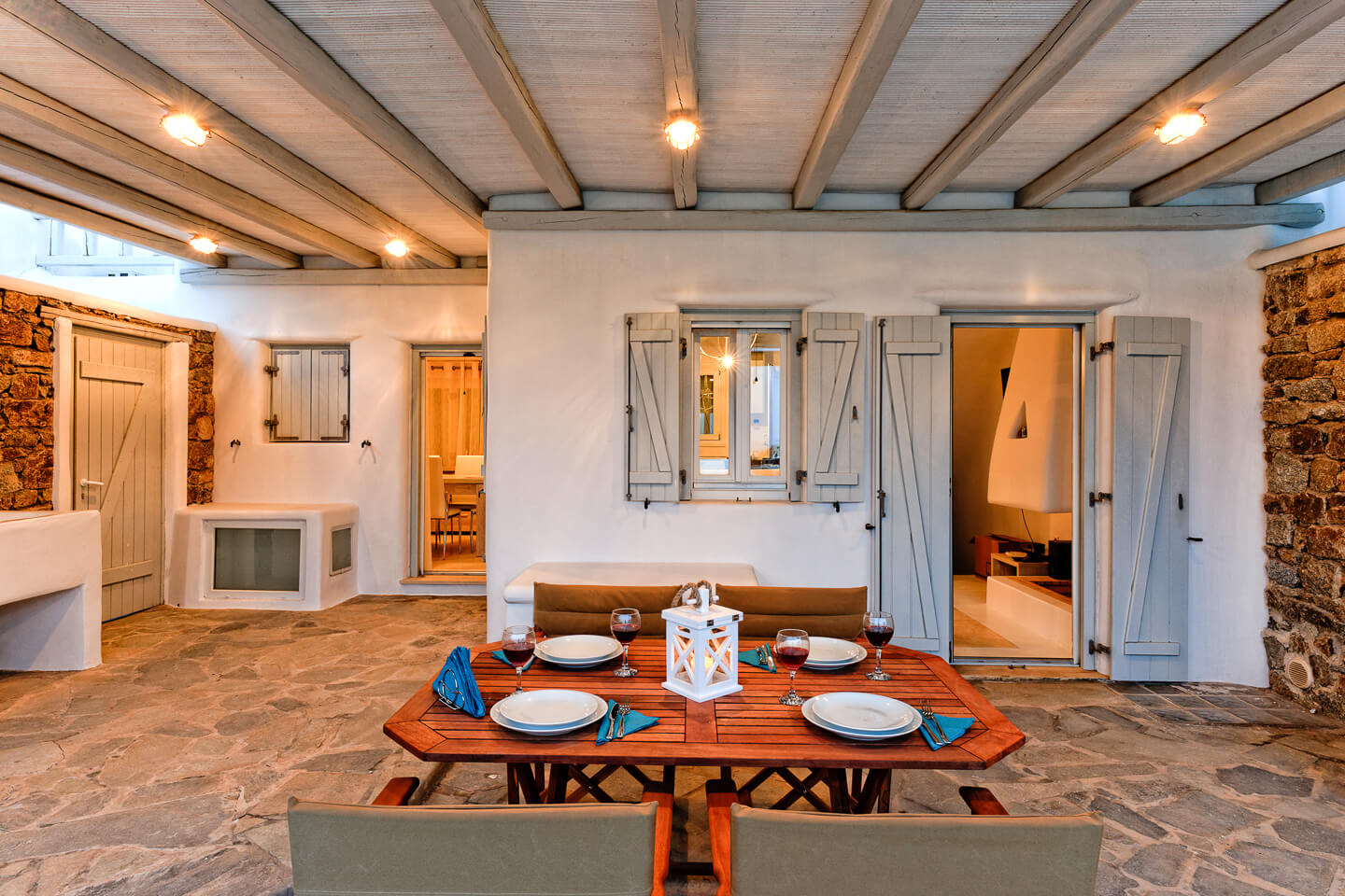 Σε απόσταση λιγότερη των 2 χιλιομέτρων από τα γαλάζια νερά της παραλίας του Καλαφάτη και 10 χιλιόμετρα από τη χώρα της Μυκόνου, η μοντέρνα αυτή βίλα των 160 τ.μ., κατασκευασμένη στις γραμμές της κυκλαδίτικης αρχιτεκτονικής προσφέρει μία μοναδική εμπειρία διαμονής στο πιο διάσημο κοσμοπολίτικο νησί.