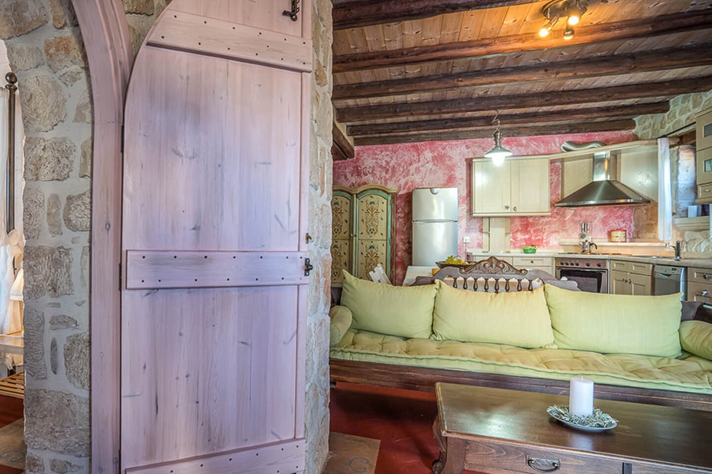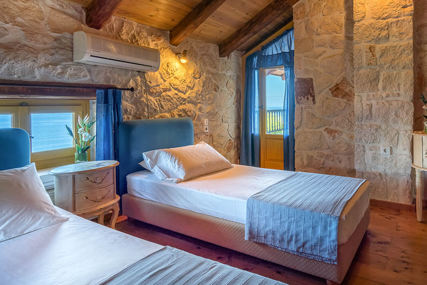 Ο τρίτος ξενώνας, ο οποίος είναι 85 τ.μ. και μπορεί να φιλοξενήσει 4 άτομα, βρίσκεται σε μία πολύ ήσυχη περιοχή και ξεχωρίζει για το μαγευτικό μπαλκόνι του, το οποίο μοιάζει να αιωρείται πάνω από τη θάλασσα. Αποτελείται από 2 ορόφους και διαθέτει 2 υπνοδωμάτια και 2 μπάνια -ένα σε κάθε όροφο- ενώ στο ισόγειο βρίσκονται η κουζίνα, η τραπεζαρία και το σαλόνι. Το ακίνητο επικοινωνεί, μέσω ανεξάρτητης εξωτερικής σκάλας, με ένα μικρότερο ξενώνα 25 τετραγωνικών μέτρων με δυνατότητα φιλοξενίας 2-4 ατόμων, ο οποίος διαθέτει κουζίνα, καθιστικό, μπάνιο και εσωτερική σκάλα που οδηγεί σε υπνοδωμάτιο τύπου loft. Βγαίνοντας στην αυλή, η μοναδική θέα κόβει την ανάσα, ενώ ο χώρος είναι εξοπλισμένος με τζακούζι 6 θέσεων για απόλυτη χαλάρωση.